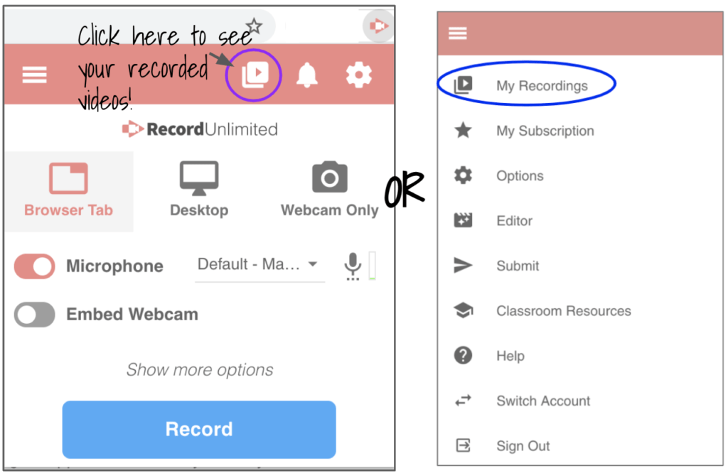 You don’t have to access your videos from your Drive, Screencastify folder, etc.! You can very easily access them right from the extension menu itself!