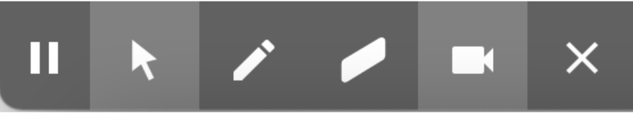 The next option is whether or not to show the drawing tools. These include a pause button (to pause your recording), cursor options, pencil (and colours) to write on the screen, an eraser, and a button to toggle on/off the webcam. These tools are not available on ALL pages (for example, it is not available on a Google search page).