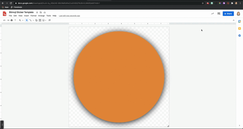 To get started with creating your Bitmoji stickers, you can grab the template using the link at the top of this page. It’s set up in Google drawings using a 3in x 3in canvas size. Then, simply drag and drop the Bitmoji you want to add to your sticker, resize, and you’re done! It’s that easy.
