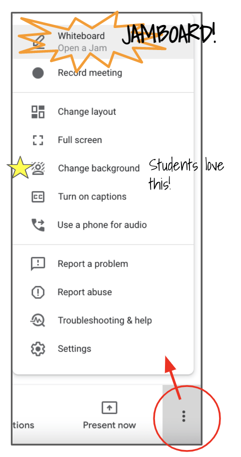 Changing the background is particularly enjoyable. This allows you to blur out or change your background. This is great because it allows students and teachers to have a sense of privacy while turning on their cameras. There’s no need to see everyone’s houses or workspaces, which is important to many of our students.